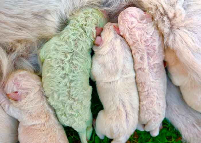 El nacimiento de un cachorro de perro no parece en principio una noticia de alcance mundial, sin embargo, si el recién nacido es de color verde, se entiende el interés.