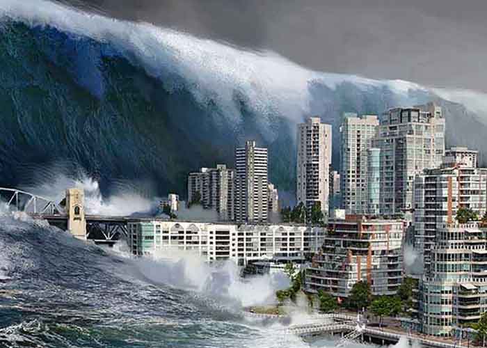 Un tsunami o sunami es una sucesión de olas gigantescas causadas por alguna perturbación bajo el agua. Normalmente se produce por un terremoto en el fondo del océano, aunque también pueden ser provocados por derrumbes en la costa, erupciones volcánicas, deslizamientos de tierras submarinas o incluso el impacto de un meteorito en el mar.