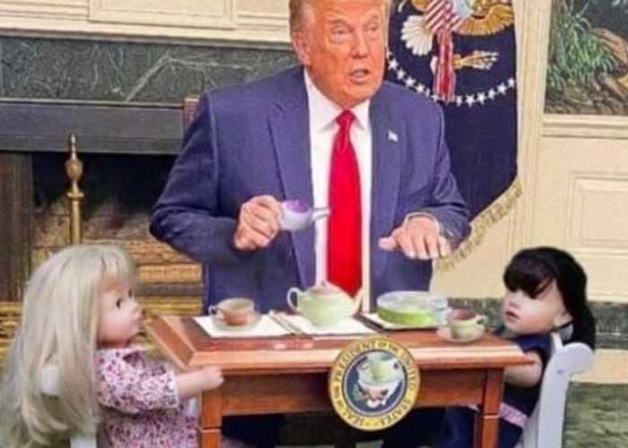 Los memes no se hicieron esperar y muy pronto Twitter se llenó con imágenes bajo los 'hashtags' #TinyDesk (escritorio diminuto) y #DiaperDon (pañal Don), comparando el tamaño de la mesa con muebles de juguete y banquetas de piano.