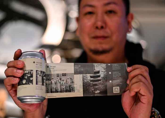 La lata, de color gris con dibujos coloridos de árboles típicos chinos en flor, era una forma de "contarle a la gente nuestra historia", explica el cervecero.