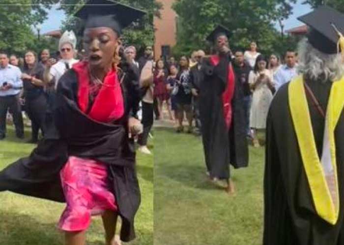 🔥🌎 – A college graduate has gone viral after she snatched the microphone from a faculty member who didn’t allow her to say her full name during graduation.#KadiaIman, who is an aspiring Popstar, took matters into her own hands and snatched the microphone back to have her… pic.twitter.com/sJjfKGCgyx