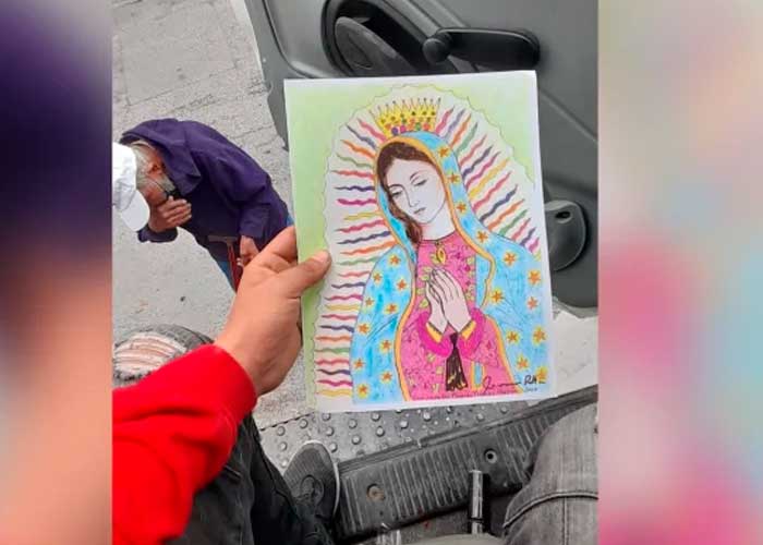 Un hombre en México recorre las calles de su barrio ofreciendo los retratos de la advocación de Guadalupe que realiza para poder alimentar a los niños que tiene a cargo. Su historia se viralizó en las redes sociales.