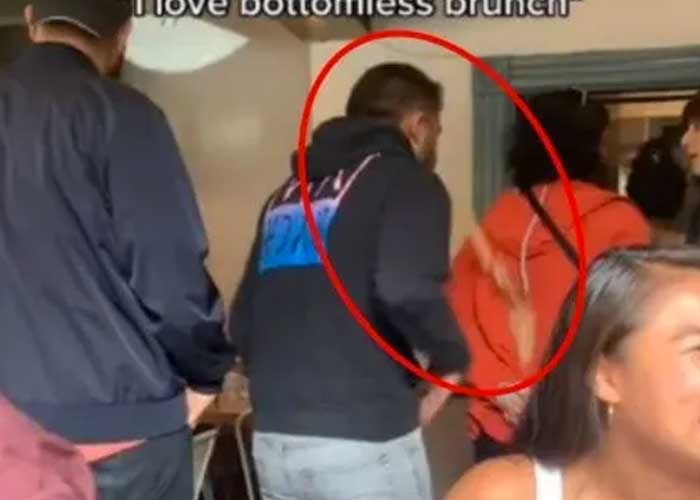 Un hombre se volvió viral en redes sociales, luego que este echara todo el «perro» en la espalda de una mujer mientras hacían fila.