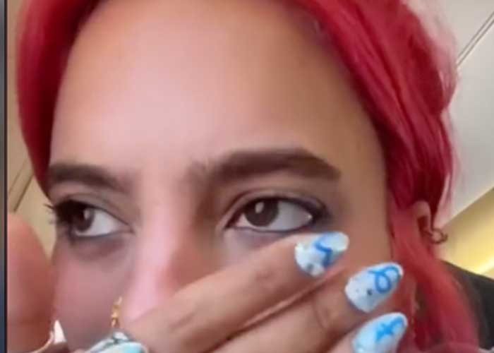 De repente, la joven hace un gesto hacia la cámara de asco o de que va a vomitar. “Estoy estancada en un vuelo de 5 horas. Deséenme suerte #traveltiktok #travel #traveling #airport #ninadrama“; compartió la usuaria en el mensaje que acompaña la grabación.