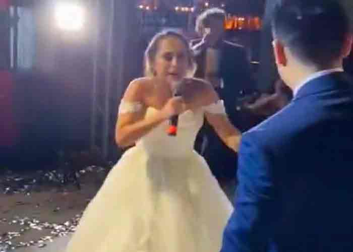 En el vídeo que te compartimos, la novia sorprende a sus invitados (algunos aún con sus cubrebocas por la pandemia de coronavirus) al lanzar algunas rimas al estilo freestyle, especialmente dedicadas a su novio.