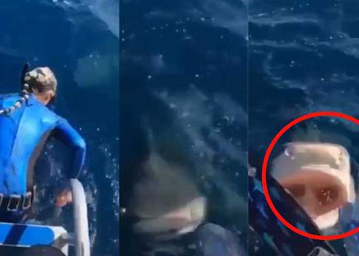 En redes sociales se viralizó un video del momento en que una mujer estaba lista con su equipo de buceo a punto de zambullirse en el mar; cuando tuvo que volver a resguardarse en el bote por la presencia de un tiburón.