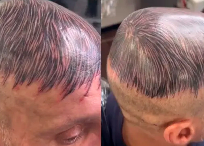 De acuerdo con la cuenta dedicada a compartir video virales, el hombre se tatuó la cabeza para «olvidarse del trasplante de cabello«. Cientos de internautas comentaron la particular decisión del hombre, por lo que dejaron sus reacciones en el post que ya cuenta con más de 272 mil «Me gusta».