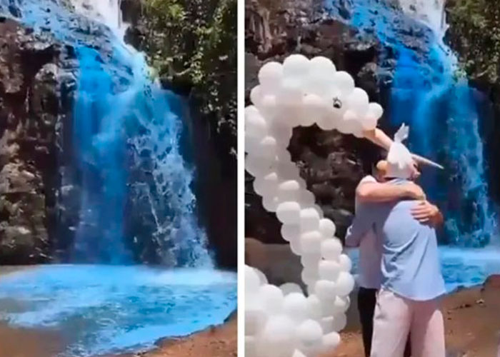 Una pareja de Brasil decidió innovar para revelar el sexo de su bebé, y pintaron una cascada de azul para compartir la noticia, lo que desató polémica ambientalista en las redes sociales.