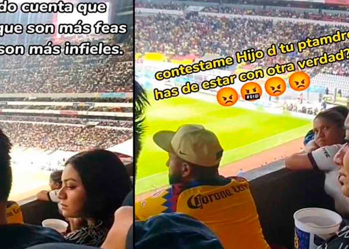 En dicha plataforma digital, circula un video en donde se ve a una pareja en las gradas del Estadio Azteca observando el partido entre América y Pumas, cuando de pronto comienzan a discutir; por lo que la joven hace una llamada por teléfono, lo que dio pie a que fuera descubierta su infidelidad.