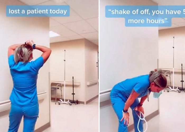 Un caso poco común ocurrió en los Estados Unidos, donde una enfermera fue criticada fuertemente por los usuarios de TikTok, luego de grabarse llorando por la muerte de un paciente.