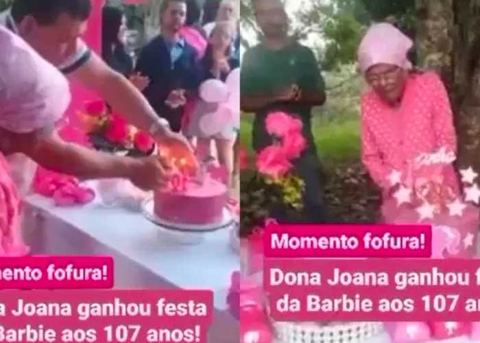 @metropolesoficial Uma idosa completou 107 anos e ganhou uma #festa toda rosa, com a temática da Barbie, em Itiruçu, no interior da Bahia, no último fim de semana. Dona Joana Ricardina ficou eufórica com a comemoração, que viralizou nas redes sociais nesta semana. A ideia da festa de Barbie foi da bisneta Jacqueline Sthephanie que contou que a bisavó adora comemorar o #aniversário e ama a cor rosa #TikTokNotícias