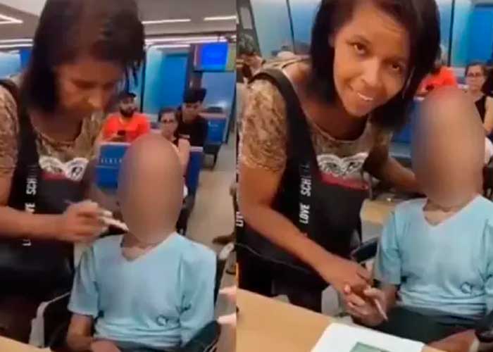 En un video grabado por los empleados del banco y compartido en redes sociales, se puede ver a la mujer sosteniendo la cabeza del hombre para mantenerla erguida, mientras intentaba convencerlo de firmar el documento necesario para el préstamo.