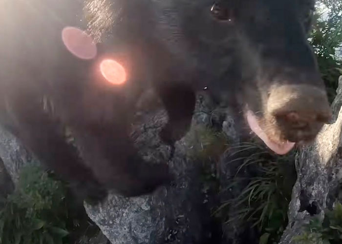 La aterradora interacción tuvo lugar a principios de octubre. Las imágenes muestran al sujeto escalando cuando de repente se encuentra con la bestia, que se cree que era hembra y estaba defendiendo a su cría.