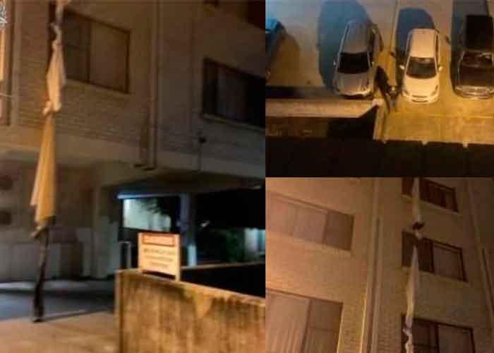 Un hombre de 39 años fue detenido luego de escapar atando sábanas de un hotel en el que estaba en cuarentena por coronavirus. Las fotos que fueron compartidas originalmente en Facebook se viralizaron rápidamente.