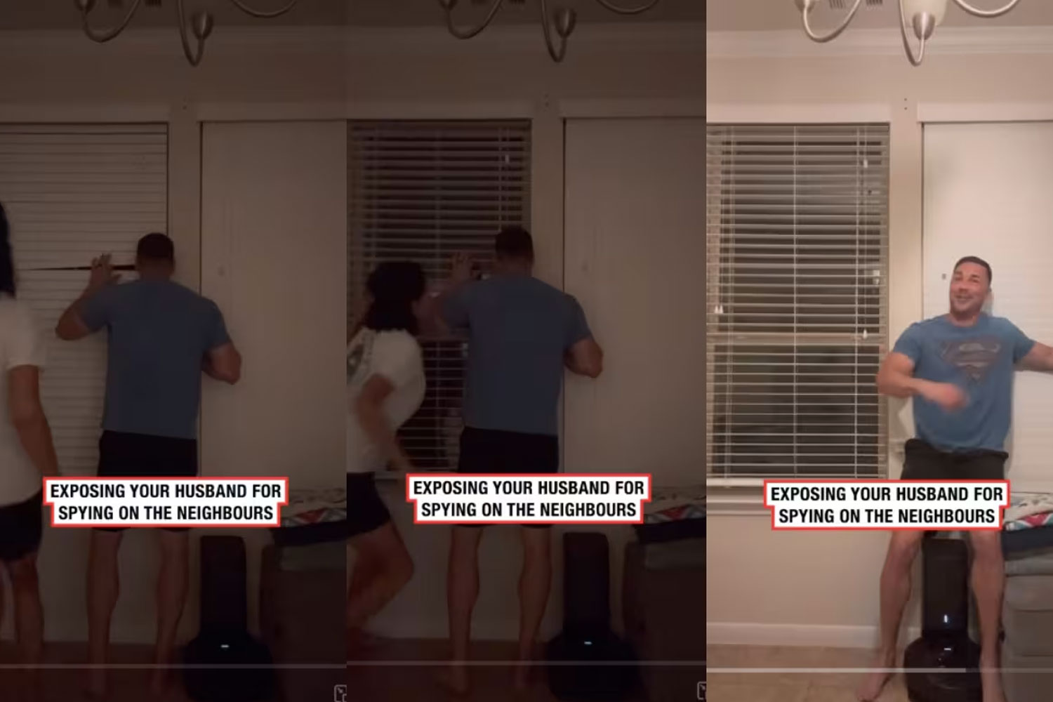 El desenlace fue inesperado, pues de manera repentina, la mujer abrió todas las persianas y encendió la luz de la habitación, dejando expuesto a su esposo; quien estaba espiando a escondidas.