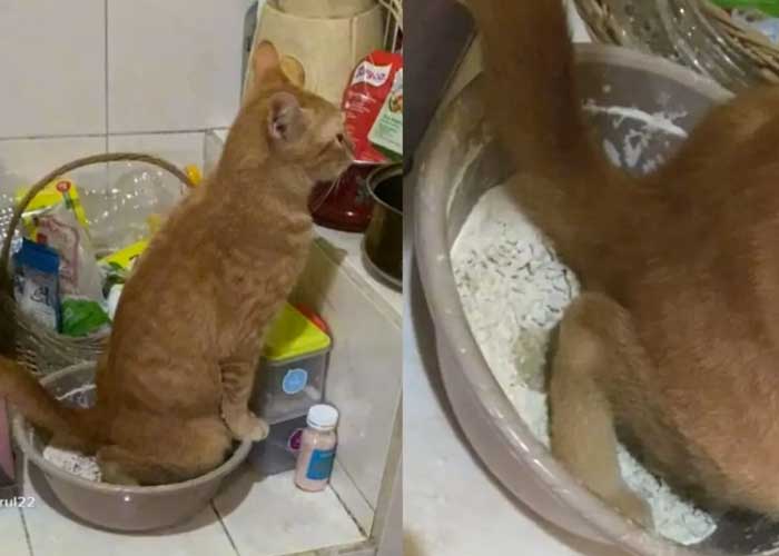 Recientemente un video se tornó viral, y es que un gato «aportó a la cocina» en su casa, pues confundió la taza de harina con su arenero y desato miles de comentarios.