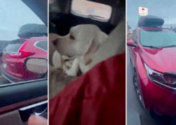 Según se puede observar, el hombre estaba saliendo del estacionamiento marcha atrás, hasta que se dio cuenta de la presencia de un perro en la parte trasera. «Tuve la sensación de que había algo en la parte de atrás», dijo, pero no se trataba de su perro labrador llamado Panda.