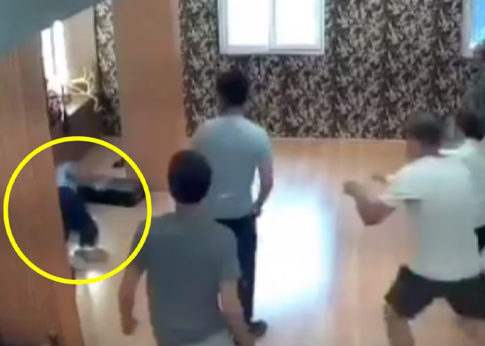 Al darse cuenta de la emergencia, los asistentes a la clase se apresuran para ayudar a Bagga, mientras la instructora detiene la música para facilitar la intervención.