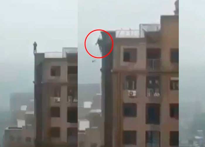 El clip fue tomado desde la ventana de otro edificio que está en una zona muy cerca al lugar de los hechos en el metraje que dura algunos segundos se puede apreciar a un hombre parado sobre la orilla de dicho edificio de gran altura, que al parecer intenta tomar una fotografía a la densa niebla que hay en el ambiente, cuando de repente por un mal cálculo termina cayendo.
