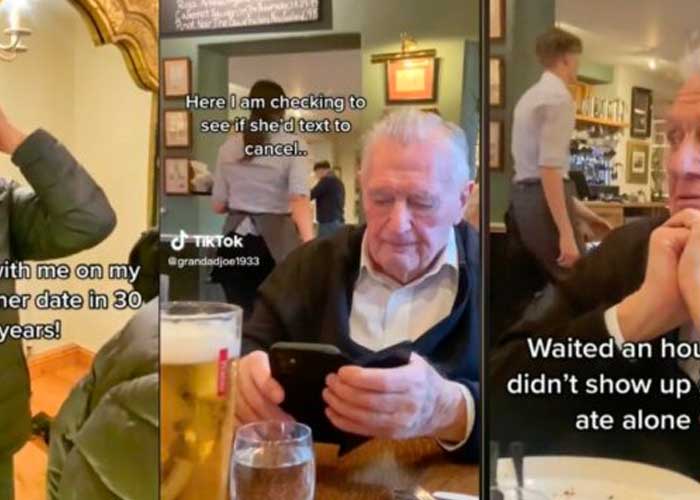 El decepcionado publicó su historia en su cuenta @grandadjoe1933 de TikTok, donde contaba que estaba alistándose para su primera cita en 30 años, se puso su mejor traje y fue rumbo al restaurante.