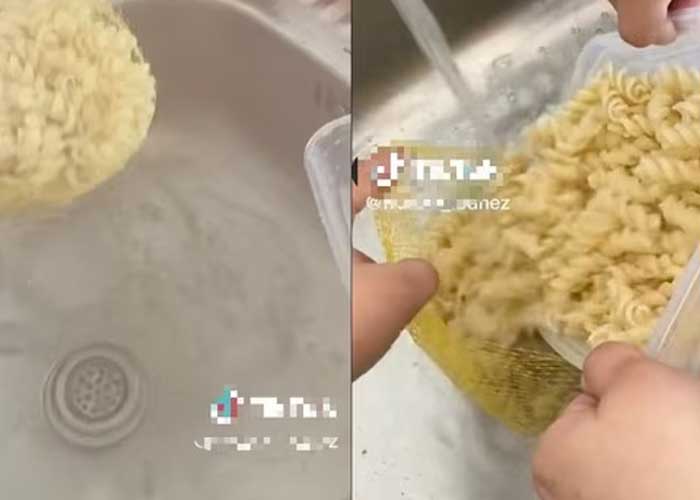 “Creo lo más higiénico sería poner cómo una tapa y poner un tenedor, dejar un hueco con el mismo mango del tenedor y ahí caiga el agua”, “LOS FIDEOS NO SE ENFRIAN saben feos frios jajaja”; escribieron otros.