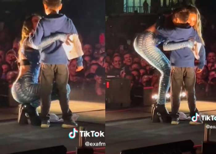 A través de redes sociales se viralizaron algunas imágenes donde Beli subió al escenario a Fernando, un niño de aproximadamente 6 años; luego de que este le lanzara un dibujo de unicornio.