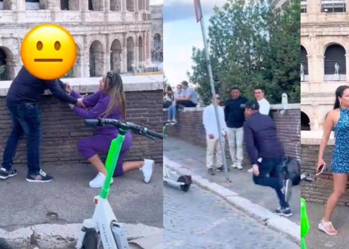 Gabriela Grajales compartió, mediante su cuenta de TikTok, el momento en que caminaba por calles de Roma, por desgracia logró grabar el momento en que una mujer decidió hincarse y proponerle matrimonio a su novio, pero ¿Por qué fue una desgracia?