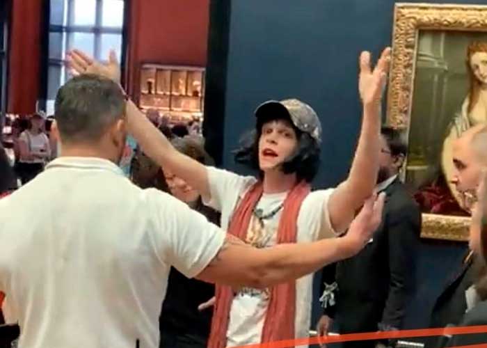De acuerdo con algunos visitantes del recinto, quienes han compartido en redes sociales imágenes de las autoridades del museo limpiando los restos de pastel sobre la mona lisa, este habría sido arrojado por un hombre que iba en silla de ruedas, disfrazado con una peluca.