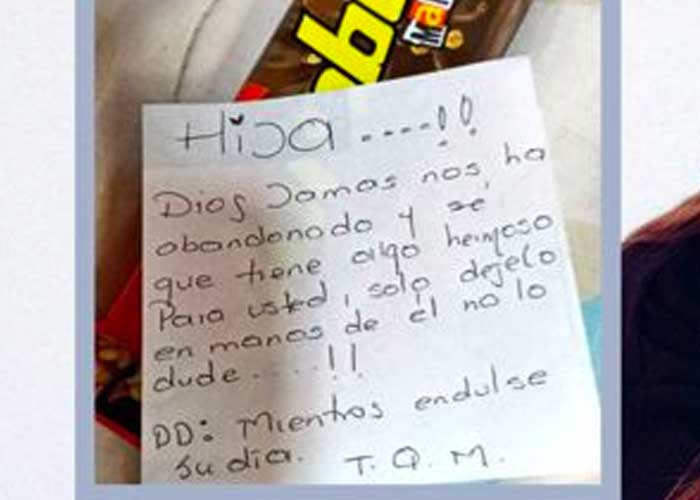 “Hija, Dios jamás nos ha abandonado y sé que tiene algo hermoso para usted, solo déjelo en las manos de él y no lo dude. Posdata: mientras endulce su día. T.Q.M.”; dice la carta de la madre a su hija.