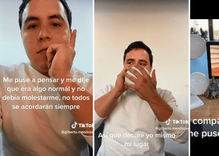 La grabación compartida por el usuario Gilberto Mendoza (@gilberto.mendozao) muestra el momento en que llega a la oficina y no ve su lugar decorado, como acostumbran a hacerlo a todos sus compañeros. «Hoy es mi cumpleaños y en mi trabajo pensé que se les olvidó”; escribió el muchacho junto al video que ya casi logra un millón de reproducciones en TikTok.