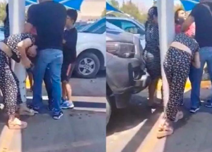 Se armó la penquiadera en un estacionamiento de supermercado en Ciudad Victoria, Tamaulipas, luego de que mujer descubriera a su esposo caminando campantemente con su queridita.