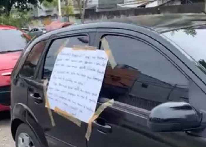 La mujer empresaria, tomó la importante decisión de no competir, pues su dignidad es primero; le pegó un cartel en el carro de su ex pareja con un mensaje dedicado para él.