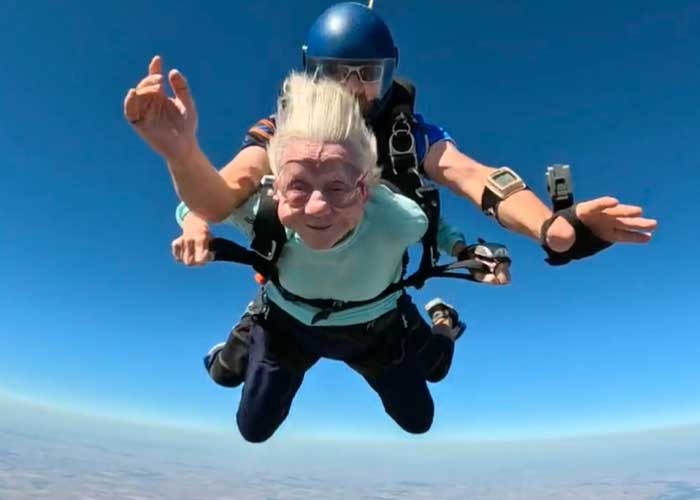 Con 104 años una abuelita se lanzó en paracaídas
