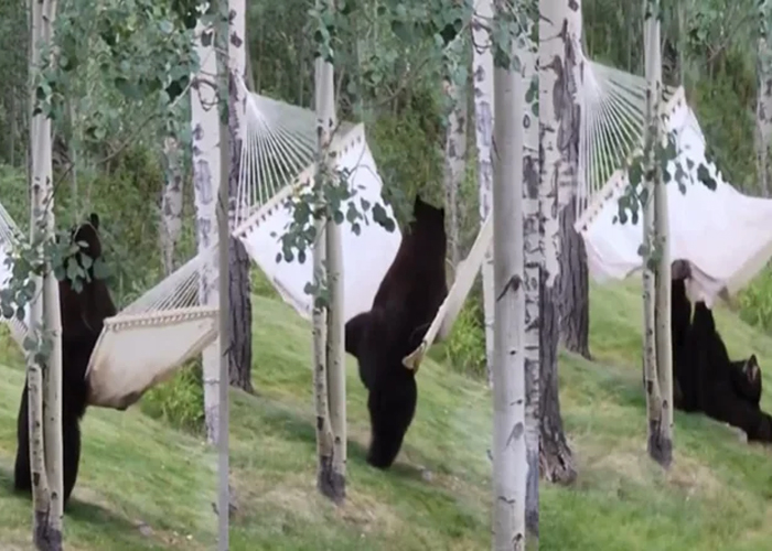El momento de triunfo del oso, balanceándose serenamente en la hamaca, fue capturado en video por los vecinos y rápidamente se viralizó en las redes sociales.