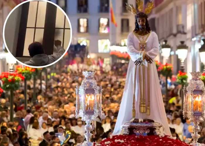 Incluso una persona llega a golpear la ventana. Aunque por el vídeo no puede determinarse la ubicación exacta; pero por la música sí puede comprobarse que se trata de una procesión de Semana Santa.