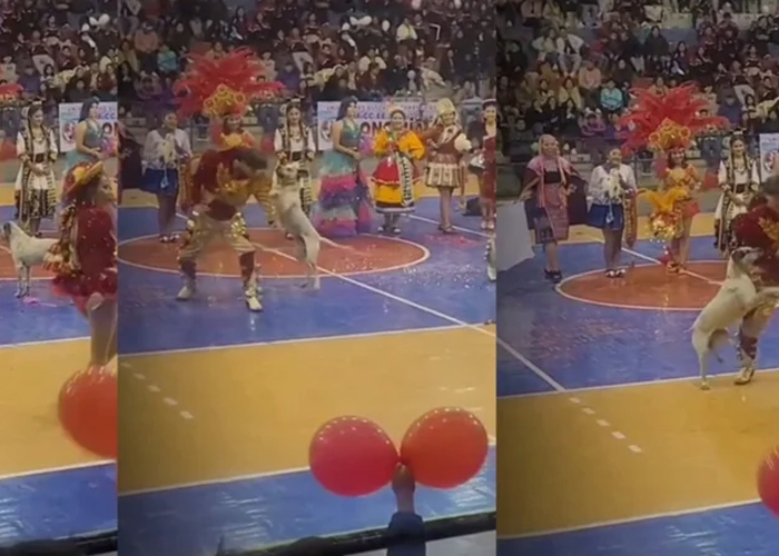 Todo transcurría con normalidad, hasta que un perrito, ahora apodado en redes como el ‘perrito malvado’, irrumpió en el escenario. Con energía y mucha curiosidad, el canino fijó su atención en un bailarín que realizaba sus mejores pasos.