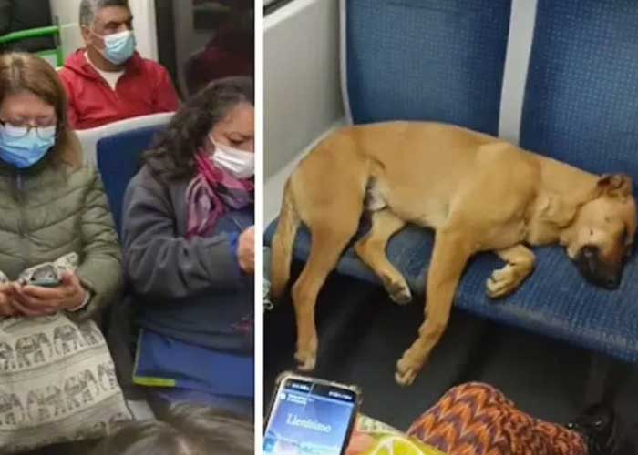Un perro hizo viral en redes sociales, luego que este se quedara dormido en los asientos de un tren y varios viajeros se fueran de pie.