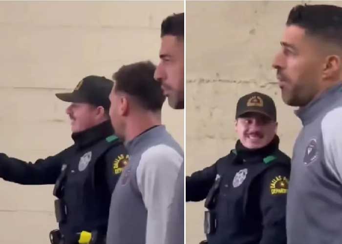 En la salida al campo de juego, donde se enfrentan Inter Miami y FC Dallas, un efectivo de las fuerzas locales intentó sacarse una foto con el crack argentino, pero el desenlace fue inesperado. Cheuko lo agarró del brazo y lo separó de Messi, mientras que Leo siguió caminando al lado de Luis Suárez.