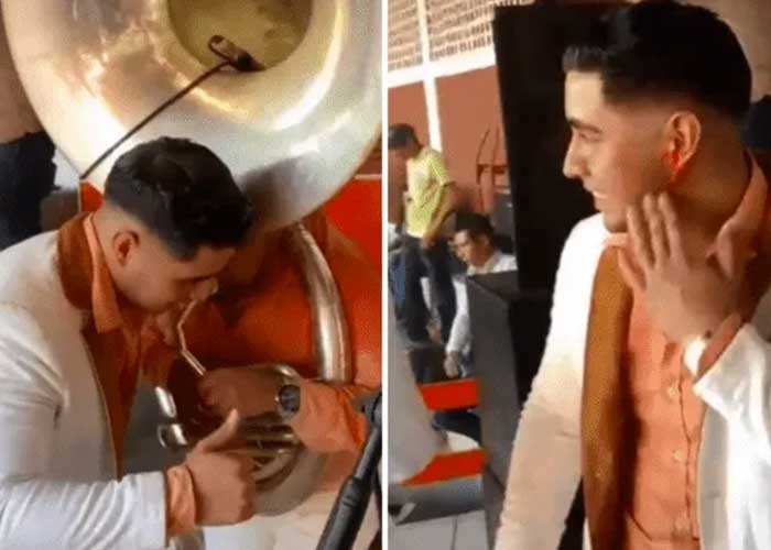 Sin embargo, tras acercarse demasiado a su compañero que tocaba la tuba para ver si la música se escuchaba bien, se le reventó el tímpano. Después de despegarse del instrumento, uno de sus compañeros le indicó que se revisara el oído; acto seguido ocurrió lo menos esperado.