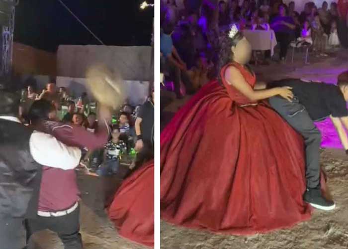 En una parte del baile, los adolescentes se acercaron a la festejada y comenzaron a bailar de una manera “sexy”. Al ver los movimientos, el padre de la menor intentó alejar, de mala manera, a los chambelanes.