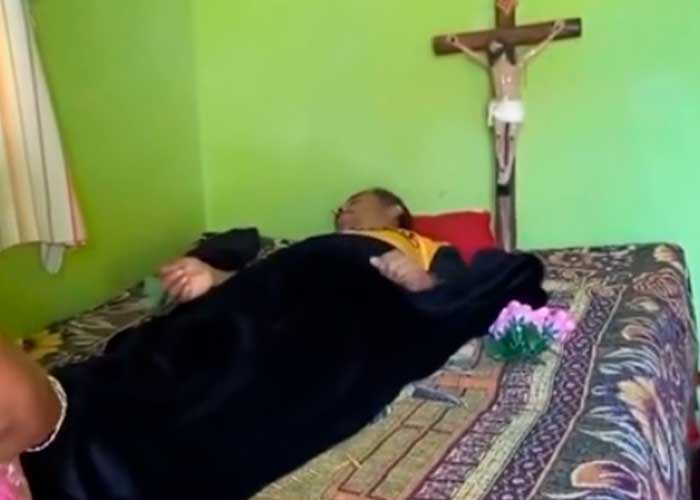 Luego de eso, tanto la mamá como el hermano y demás familiares, se ponen a rezar el padre nuestro, despertando a su víctima, quien se nota visiblemente confundido, y después bastante asustado.