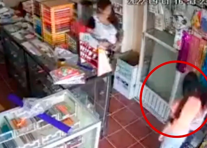 Como si se trata de un cliente más, la mujer ingresó al local. Comenzó a buscar al encargado, al ver que no había nadie; se dirigió a la esquina y empezó a tomar cosas del mostrador. En la grabación se observa cómo la ladrona metió algo debajo de su pantalón.