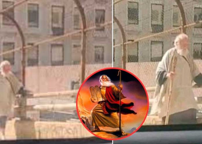 La sorprendente comparación se basa en diversas similitudes notables. El individuo en cuestión presenta cabello largo y blanco, vestimenta que evoca la antigüedad, y lleva sandalias; todos elementos que se asemejan a la imagen tradicional de Moisés en la Biblia.