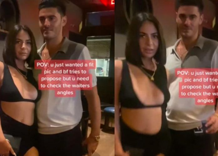 Seguidamente, el hombre abrió sutilmente el estuche y elevó su mano para que su pareja lo viera, pero ella optó por caminar hacia la persona que había “tomado la foto” para revisar los ángulos de la toma. En un abrir y cerrar de ojos, el anillo de compromiso había sido ofrecido al vacío.