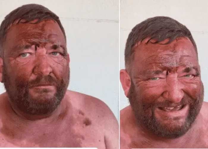 Y es que este sujeto tenía una cita y para verse mejor, quiso lucir más bronceado, sin embargo; terminó con toda la piel de la cara naranja, pues el hombre origniario del Reino Unido se habría quedado dormido un par de horas con el bronceador puesto.