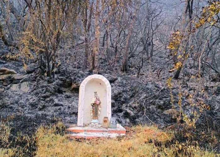 Estatua de una Virgen quedó intacta tras incendio forestal