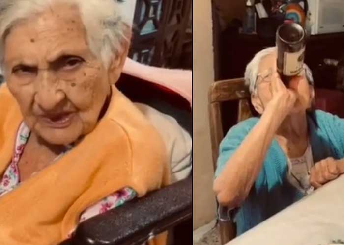 Una longeva señora de 105 años de edad se volvió viral, luego de que se enojara porque su hija de 83 años de edad aún continúa tomando cerveza.