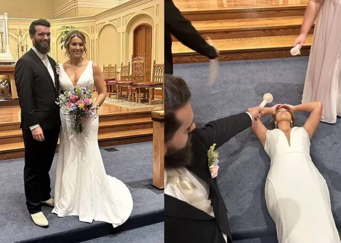 Se desmayó en el altar apenas unos momentos después de pronunciar sus votos matrimoniales.
