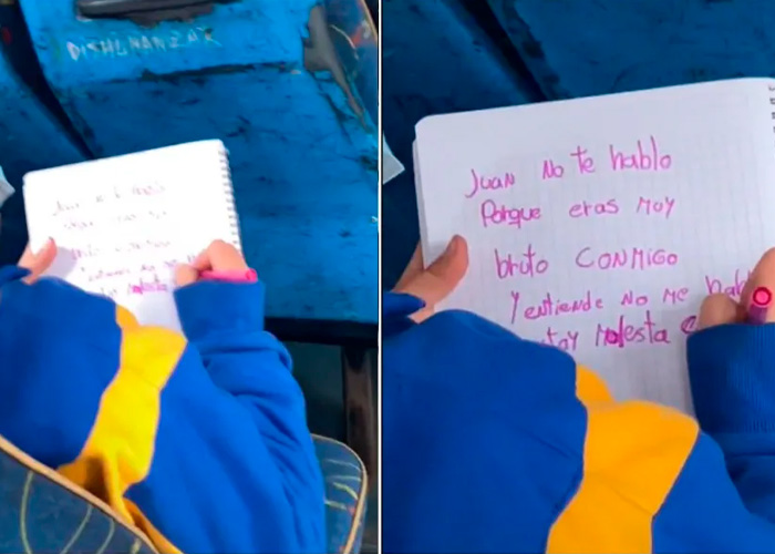“Juan, no te hablo porque eres muy bruto conmigo y entiende no me hables. Estoy molesta contigo”, se lee en la carta de la niña.