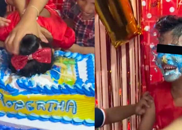 En dicho clip, se aprecia a la festejada acercarse para darle un mordisco a su pastel de cumpleaños, sin imaginarse que sus amigos la arrojarían a su pastel de cumpleaños sin piedad alguna.